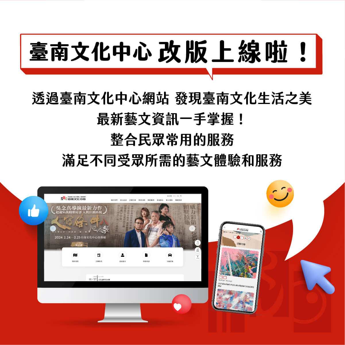 臺南文化中心及新化演藝廳 網站全新改版上線,嶄新數位體驗與你共享