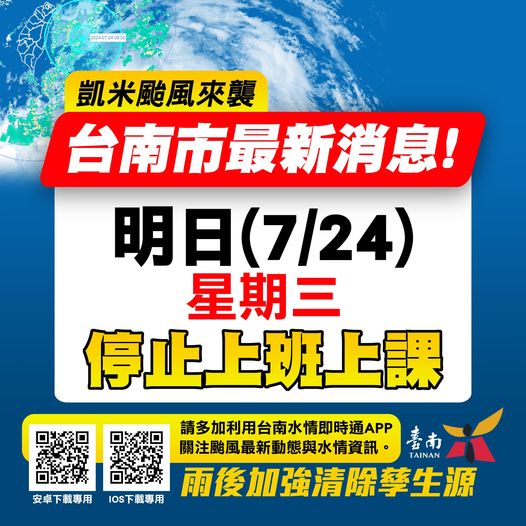 7/24臺南市停止上班上課